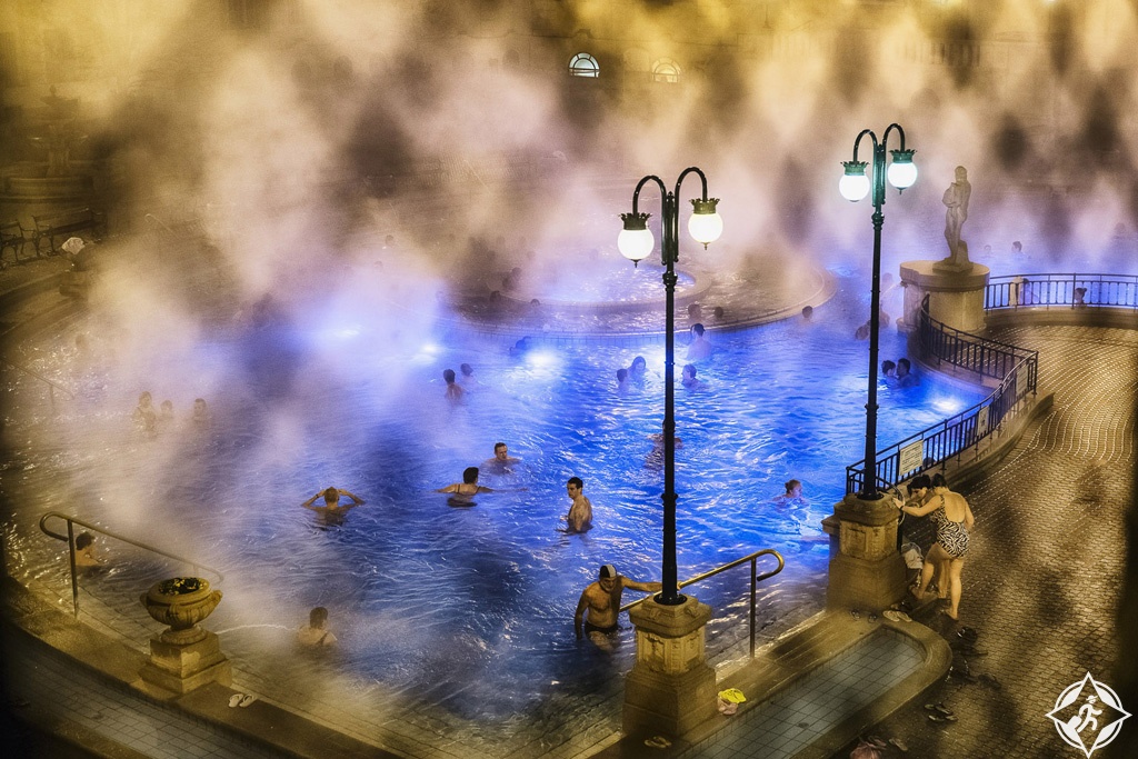 تُعرف الحمامات الحرارية في بودابست بأنها واحدة من الأنشطة المفضلة للمجرية بشكل خاص في فصل الشتاء, وقد كنا محظوظين أن نلتقط صورة للحمامات الحرارية للدليل السياحي, فما أروع الضباب الناجم عن الفارق الكبير في درجات الحرارة بين ماء الحمامات الساخنة والغلاف الجوي, وهذا يجعل المنتجع الصحي أكثر سريالية وغامضة.