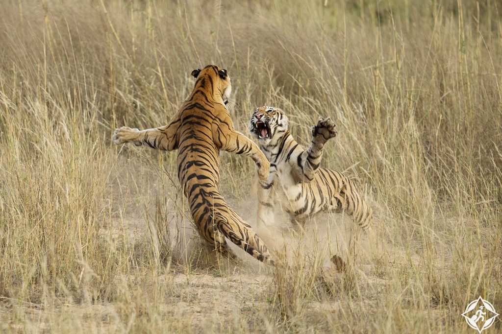إنها معركة المازحة بين اثنين من أشبال النمور الصغار البالغين كانت بالفعل فرصة رائعة لالتقاطها والتي استمرت فقط من 4 – 5 ثواني بالضبط.
